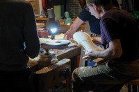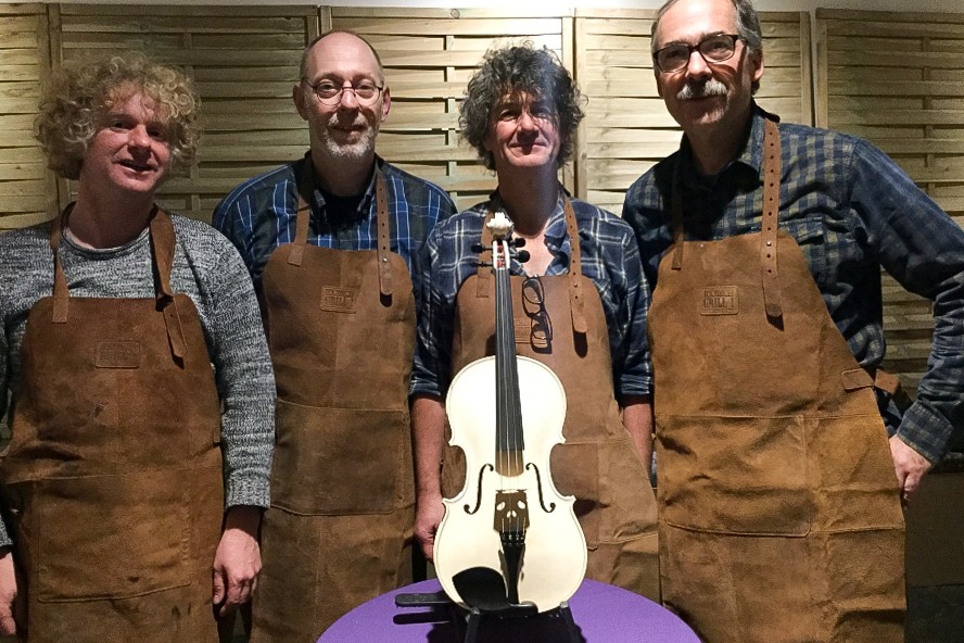 Die vier Schulfreunde kennen sich seit ihrem gemeinsamen Studium an der renommierten Geigenbauschule «Newark School of Violin» und sind heute selbständige, erfahrene und erfolgreiche Streichinstrumentenbauer. Sie haben sich entschlossen, am IVC gemeinsam und live vor Publikum eine Bratsche zu bauen, auf welcher am Ende der Tagung am Samstag, 24. November ein Konzert gegeben wird.