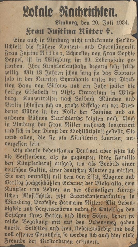 Todesbericht von Justine Haecker-Ritter Photo: Aus dem Bestand von Carl Smith