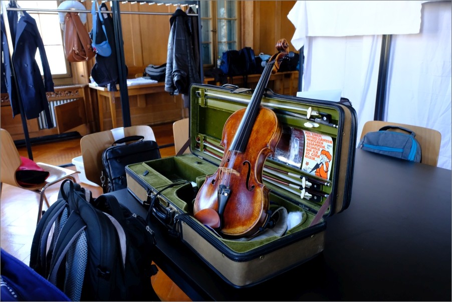 Ich erarbeite mir die Literatur mit einer Andrea Guarneri–Nachbildung von Wolfram Neureither, Montpellier mittlerer Grösse. Je nach Situation und Erfordernis wechsle ich dann auf ein grösseres oder auch kleineres Instrument. Zu nennen ist da eine wunderbare Nachbildung einer alten deutschen Viola von Bernd Hiller, Markneukirchen sowie die Ritterbratsche von Adam Hörlein von 1886 für die Partien mit dem Trio.