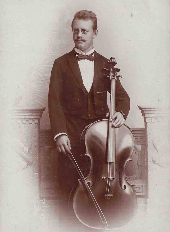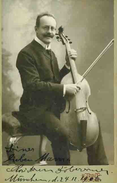 Christian Döbereiner 1906 mit einer Viola da Gamba von Joachim Tielke, Hamburg 1683