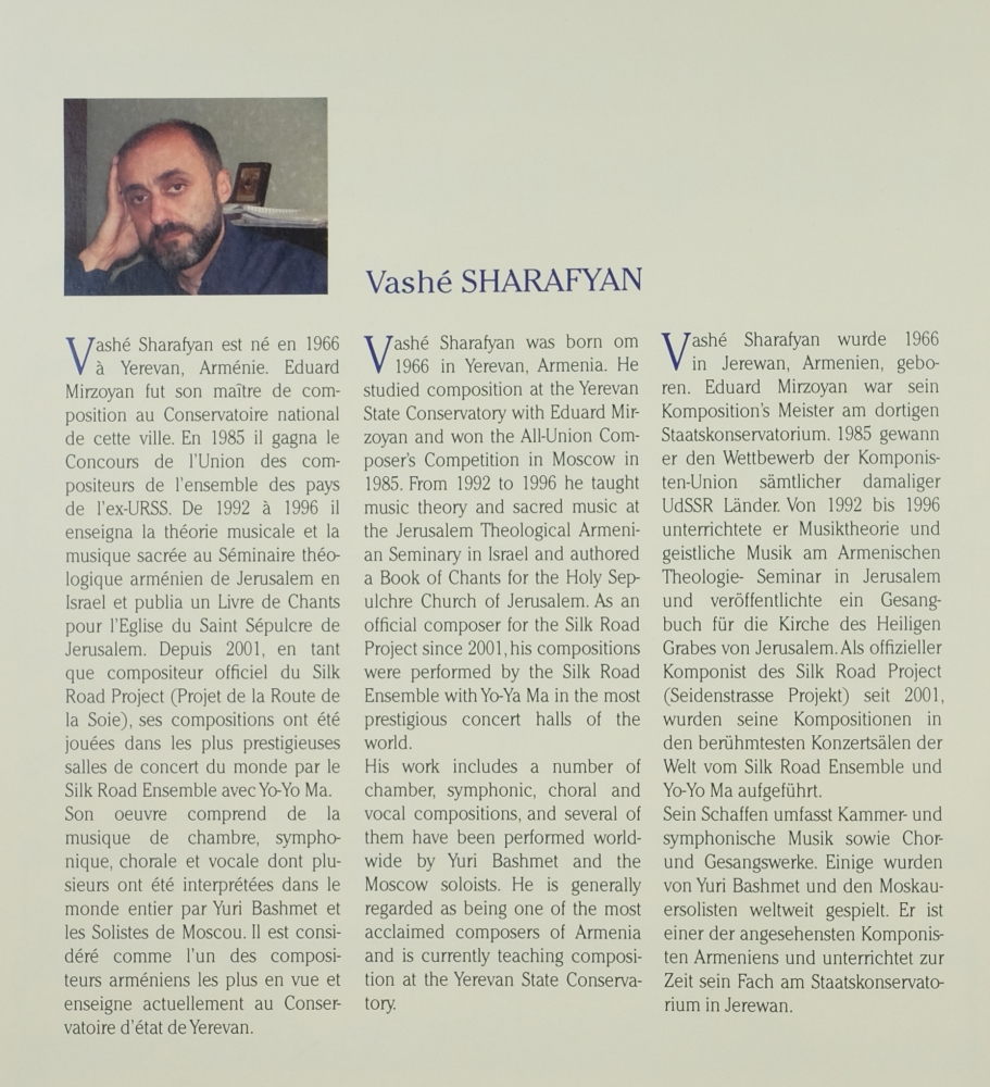 (oder «Schatten des Klanges») nennt sich ein kurzes Stück für Viola und Kammerorchester von Vashé Sharafyan. Im Vorwort gibt es die nötigen (aber