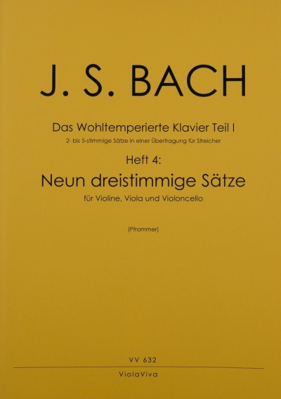 Johann Sebastian Bach: Wohltemperiertes Klavier Teil 1, Heft 4: 9 dreistimmige Sätze für Streichtrio (Violine, Bratsche und Violoncello)