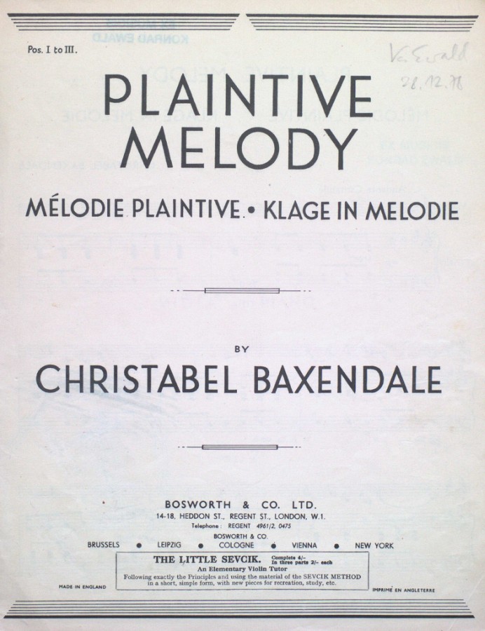 Plaintive Melody, für Violine (Bratsche) und Klavier