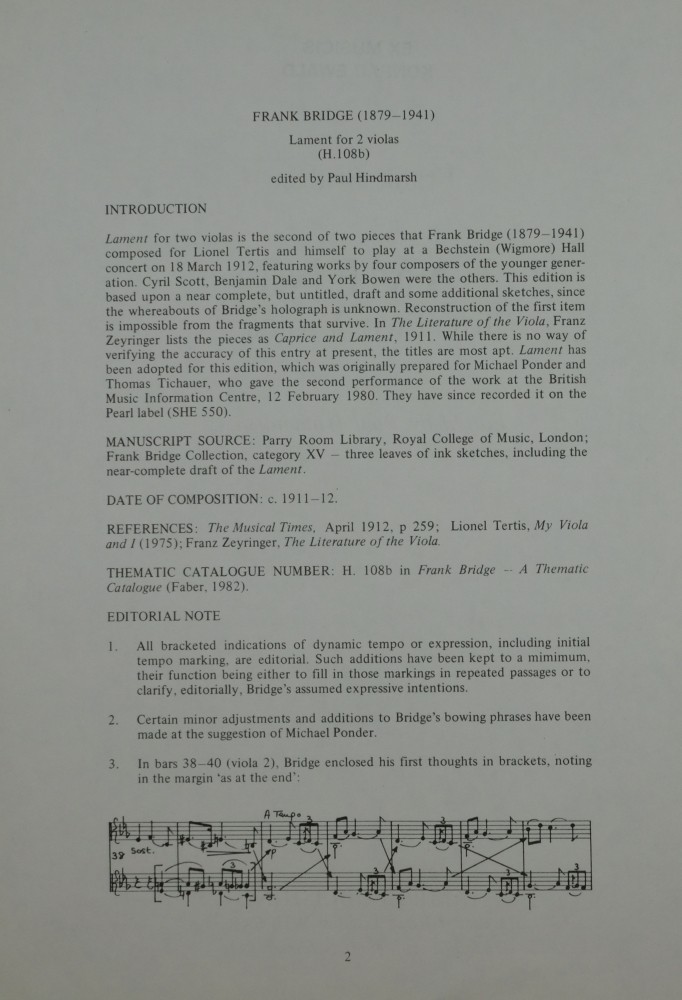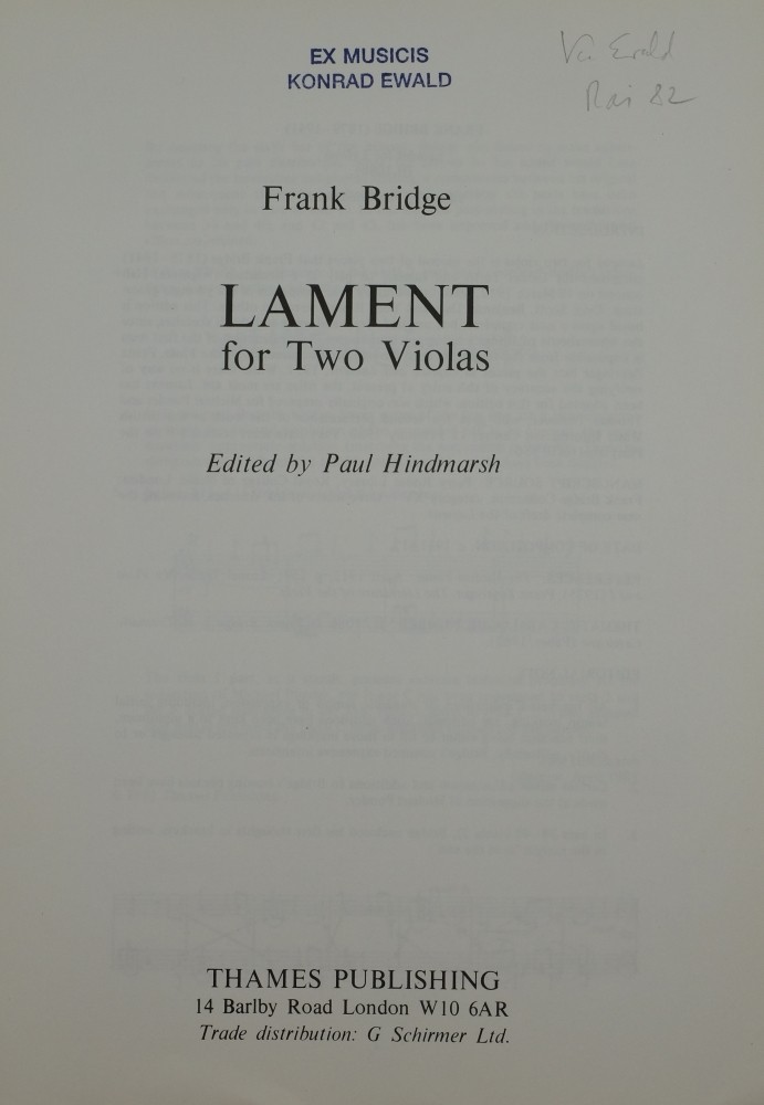 Lament, von 2 Stücken, H 101, für 2 Bratschen