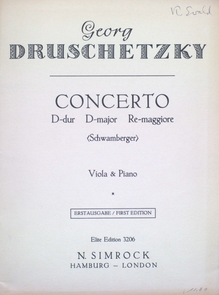 Konzert D-dur, für Bratsche und Orchester, für Bratsche und Klavier, für Bratsche und Klavier