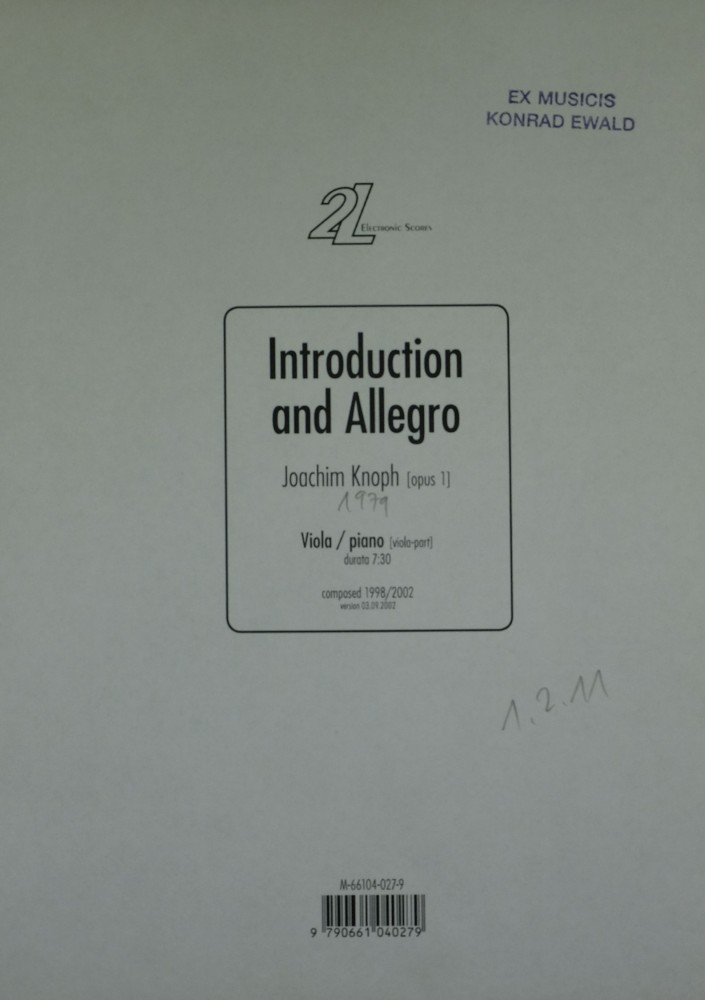 Introduction and Allegro, op. 1, für Bratsche und Klavier
