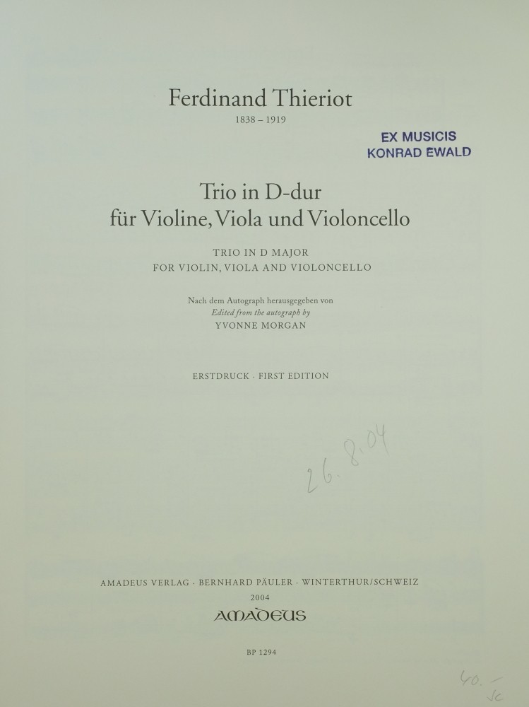 1. Trio D-dur, für Violine, Bratsche und Violoncello