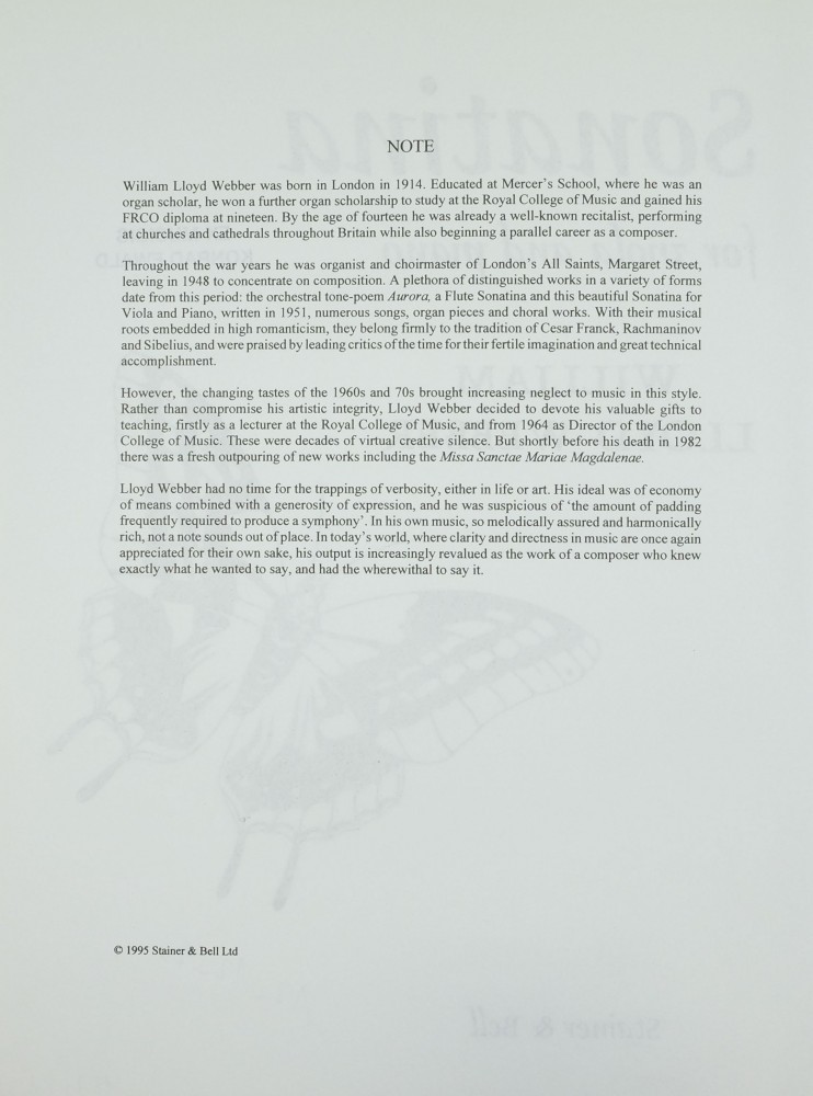 Rezension zur Sonatine für Viola und Klavier von William Lloyd Webber Heute hatte ich das Vergnügen, zusammen mit Lauretta Bloomer eine der kürzesten Sonatinen zu spielen, die ich kenne: die Sonatine für Viola und Klavier von William Lloyd Webber. Diese Sonatine ist ein Muss für alle Bratschistinnen. Sie macht sowohl den Bratschistinnen als auch den Pianist*innen großen Spaß beim Üben und ist eine ausgezeichnete Wahl für Wettbewerbe. Das Zusammenspiel der beiden Instrumente ist äußerst reizvoll und macht den kollaborativen Prozess besonders lohnend. William Lloyd Webber, Vater der beiden berühmten Komponisten Andrew und Julian Lloyd Webber, wurde oft gefragt, warum die Sonatine so kurz sei. Seine Antwort war einfach, aber tiefgründig: „Man sollte nie mehr sagen, als es zu sagen gibt.“ Diese Philosophie zeigt sich deutlich in diesem Werk, in dem jede Note sorgfältig und bedeutungsvoll gesetzt ist. Der erste Satz ist eine wunderschöne, kompakte Reise, fast wie eine einzige ausgedehnte Phrase. Er beginnt mit dem sanften Aufgang einer Sonne und fängt die Ruhe und Wärme eines perfekten Tages ein. Am Ende des Satzes hat man das Gefühl, dass der Tag friedlich zu Ende geht, die Augen sich schließen und ein Lächeln auf dem Gesicht liegt. Mein persönlicher Lieblingsmoment ist in Takt 22, wenn das Klavier auf der Auftakt-Zählzeit einsetzt und nahtlos zur Bratsche hinzukommt. Das Ende dieses Satzes ist besonders eindrucksvoll – der Höhepunkt wird nur etwa acht Takte vor dem Schluss erreicht, um dann in den letzten Takten sanft auszuklingen. Es ist ein Meisterwerk der Gestaltung innerhalb eines kompakten Formats. Der zweite Satz, gespielt mit Dämpfer auf der Viola, bildet einen schönen Kontrast. Er ist nicht traurig, sondern warm und introspektiv, bereichert durch die üppigen Harmonien des Klaviers – Laurettas Lieblingselement des Stücks. Die punktierten Triole-Figuren in der Viola, die sich zart aufwärts bewegen, vermitteln das Gefühl eines flatternden Herzens und fügen eine leichte Spannung hinzu. Dieser Satz ist überwiegend aufwärtsgerichtet in seinen Linien und strahlt eine erhebende, hoffnungsvolle Stimmung aus. Erst in der abschließenden Solozeile der Viola spürt man den Übergang, der nahtlos in den letzten Satz überleitet. Der dritte Satz erinnerte Lauretta und mich sofort an Prokofjew, insbesondere an die Figur der Julia aus seiner Romeo und Julia-Suite. Dieses unschuldige, spielerische Gefühl eines jungen Mädchens durchzieht den gesamten Satz. Die Herausforderung besteht darin, diese Leichtigkeit bei einem schnellen Tempo einzufangen. Für mich stellt die Pizzicato-Passage einen besonderen Engpass dar – möglicherweise muss ich das Tempo für diese wenigen Takte leicht anpassen, um die Klarheit zu bewahren. Auch wenn Lauretta und ich das Stück noch nicht perfekt beherrschen, haben wir das Spielen heute sehr genossen. Diese Sonatine ist ein charmantes Werk, das Einfachheit mit ausdrucksvoller Tiefe perfekt ausbalanciert und sowohl Musiker*innen als auch das Publikum begeistert zurücklässt. Karin Dolman 7. Januar 2025