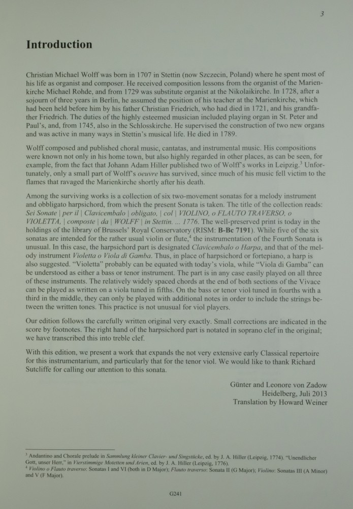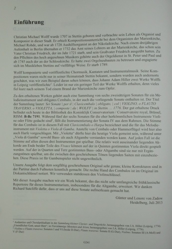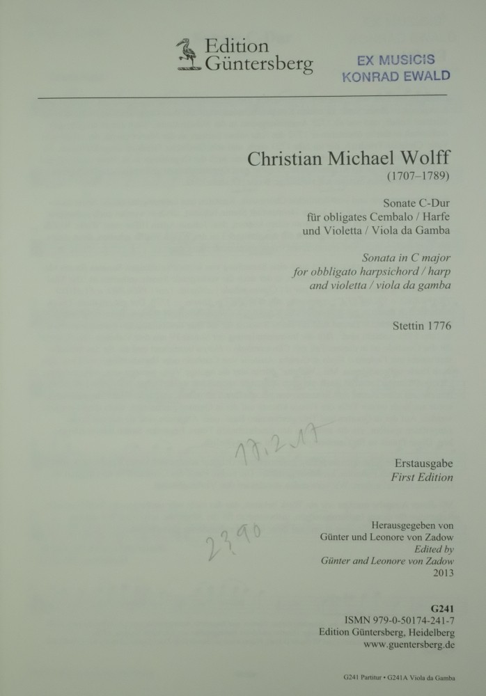 Die 4. Sonate aus einer Serie von sechs Sonaten für Cembalo und wechselnde Begleitinstrumente, die 1776 in Stettin erschienen, ist in der Version für obligates Cembalo und Bratsche jüngst auf einer Einspielung barocker Sonaten für Bratsche und Cembalo veröffentlicht worden: https://www.jpc.de
