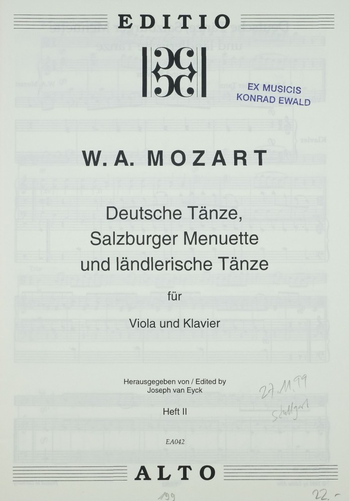 Deutsche Tänze, Salzburger Menuette und ländlerische Tänze, arrangiert für Bratsche und Klavier