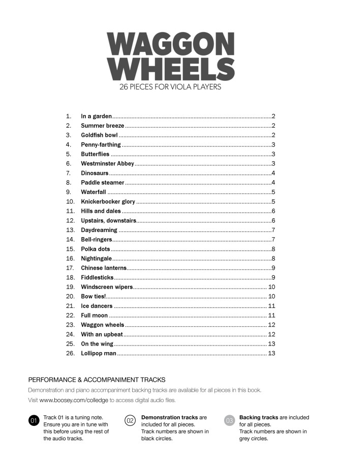 Die Reihe Easy String Music von Katherine & Hugh Colledge umfasst vier Bände mit leichtem Repertoire für Anfänger und sich entwickelnde Streicher. Die bei Lehrern und Schülern gleichermassen beliebten Bände führen mit jedem einzelnen Stück an neue Spieltechniken, Fingersätze, Töne und Rhythmen heran und festigen diese. So wird nach und nach eine perfekte Grundlage für weiteres Lernen geschaffen. Jeder Titel ist in zwei Versionen erhältlich - eine mit einer erklärenden und begleitenden Audio-CD, eine mit einem Booklet der Klavierbegleitung sowie Zugang zum Download von Audio-Dateien. Die 26 Stücke in Waggon Wheels bilden den zweiten Band der Serie. In den Stücken wird der Gebrauch des zweiten, dritten und vierten Fingers in 1-23-4 Mustern) sowie das Legatospiel anhand von leichten Stücken trainiert.