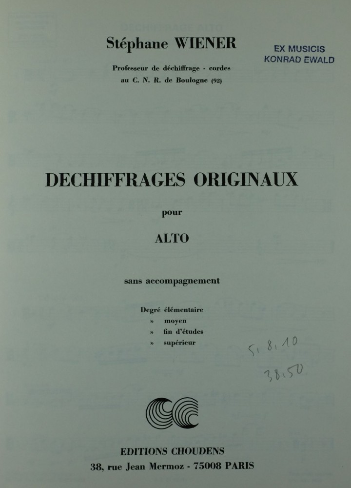 Ewald · Directory «Musik für Bratsche», CH, 2013