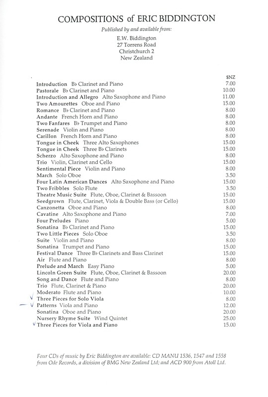 Compositions of Eric BiddingtonCompositions of Eric Biddington