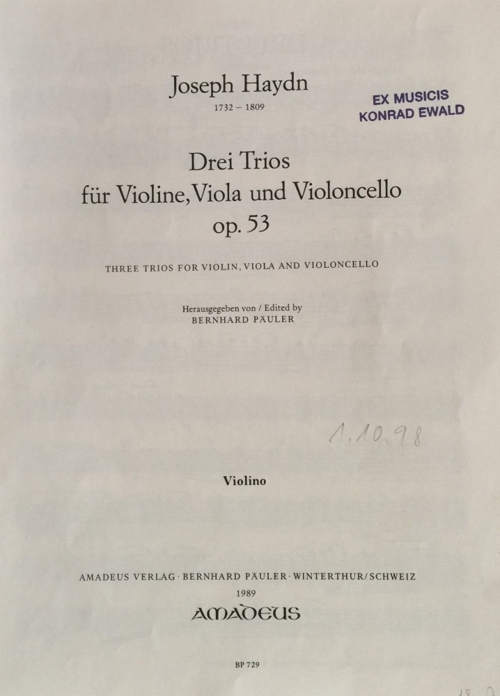 3 Trios (G/B/D), op. 53, für Violine, Bratsche und Violoncello