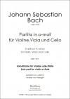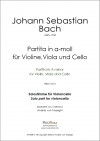 Bei der Partita a-moll ( BWV 1013 ) handelt es sich NICHT um ein Werk für Streichtrio sondern um BEGLEITSTIMMEN ( mit Bratsche oder Cello ) zur SOLOPARTITA in a-moll, welche mit Flöte ( Original ) oder eben mit Geige gespielt werden kann.