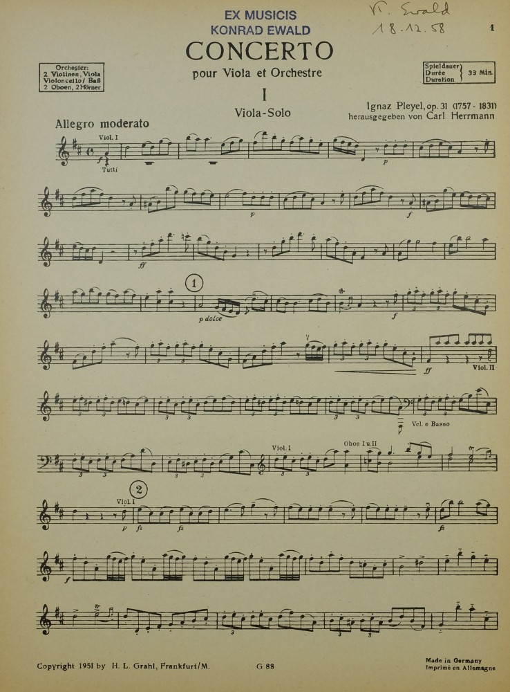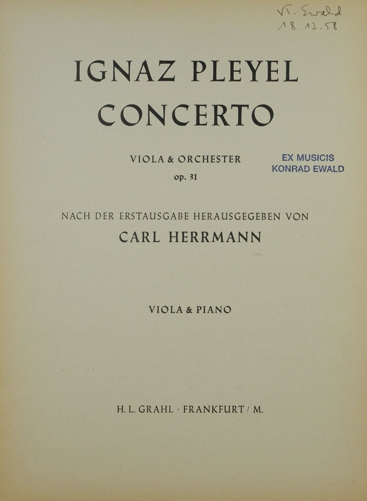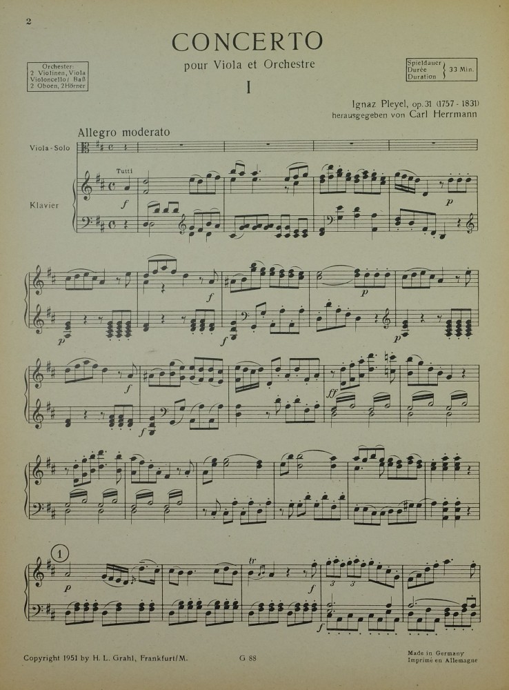 Konzert D-dur, op. 31 (auch op. 29), für Bratsche und Orchester