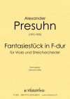 Das Fantasiestück für Bratsche und Orchester ist zwar jetzt veröffentlicht, es ist aber eines der Werke von Alexander Presuhns mit der ungewissesten Quellenlage: es existieren zwei Din A5-Heftchen mit Notensystem, in die Presuhn Skizzen zu diesem Werk, grösstenteils mit Bleistift, eingetragen hat. Vorgesehen war eine Besetzung mit grossem Orchester inklusive Holz-, Blechbläser und Pauken, die die Solo-Viola begleiten sollten. Es ist allerdings durch das ganze Werk nur die Solo-Viola-Stimme komplett dargestellt und zwar in beiden Heften. Genauso wie die Artikulationen in den beiden überlieferten Solo-Stimmen nicht komplett eingetragen sind, sondern sich aus beiden gegenseitig ergänzen liessen, sind die Orchesterstimmen in beiden Heften (sehr) unvollständig ausgeführt. Glücklicherweise sind die Lücken in beiden Darstellungen an unterschiedlichen Stellen aufgetreten, sodass es möglich war, beide Fassungen quasi aufeinander zu legen und damit einen kompletten Orchestersatz zu gewinnen. Für die umfangreiche Originalbesetzung war er aber zu "dünn", sodass es nur die eine Möglichkeit gab, das Werk aufführbar zu machen: die Orchesterbesetzung auf Streichorchester zu reduzieren. Damit ist also mit der Solostimme in Vollständigkeit und den Streicher-Stimmen bis auf wenige Töne, die notwendig waren, die überlieferten Passagen zusammenzufügen, der Notentext fast vollständig original aus Presuhns Hand, die Instrumentation jedoch aus gegebenen Gründen vom Herausgeber geschaffen. Das ist insofern schade, als Presuhn ein genialer Instumentator war, was er in seiner "Geiger von Gmünd"-Fantasie für Bratsche und grosses Sinfonie-Orchester (derzeit nicht veröffentlicht, bei Interesse aber über den Herausgeber u. U. erhältlich) unter Beweis stellt.