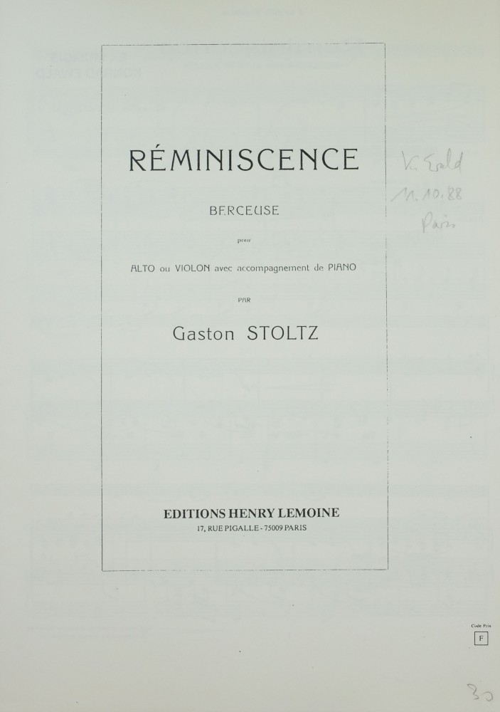 Réminiscence. Berceuse für Bratsche (Violine) und Klavier
