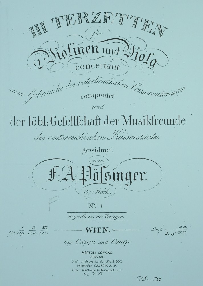 3 Terzette (F/G/a), op. 37, für 2 Violinen und Bratsche