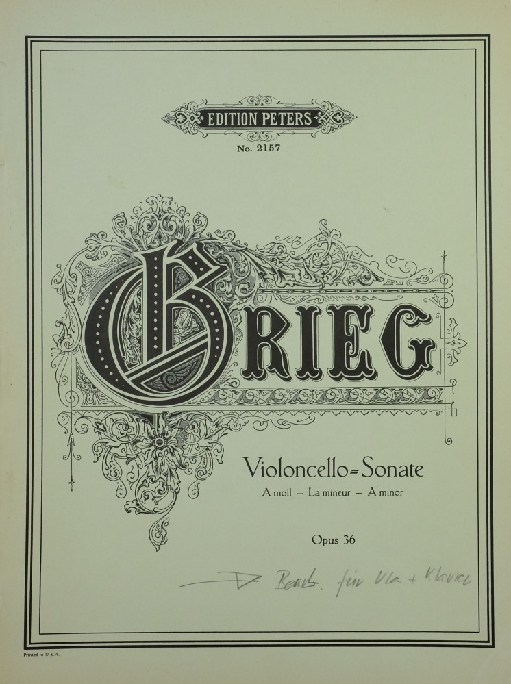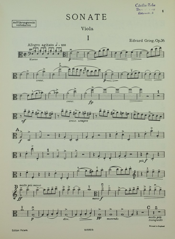 Sonate a-moll, op. 36, für Violoncello und Klavier, arrangiert für Bratsche und Klavier