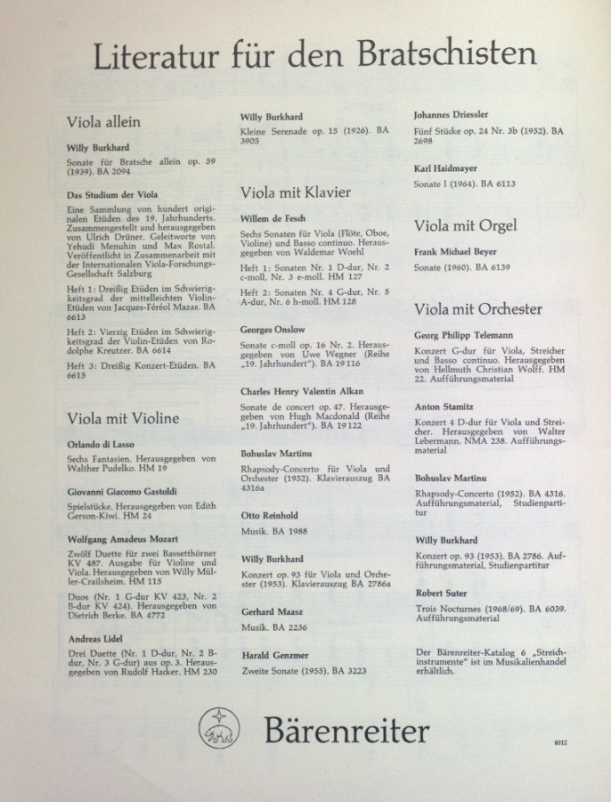 Ewald · Directory «Musik für Bratsche», CH, 2013